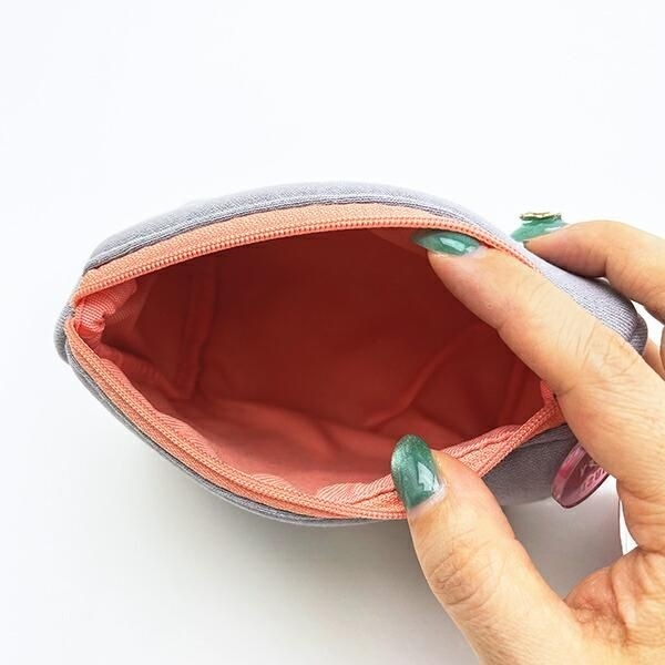 ポーチのサイズは12cm×14.5cm×2.2cm。この形がとっても可愛いですよね!コロンとしたフォルムが天才かと思いました。