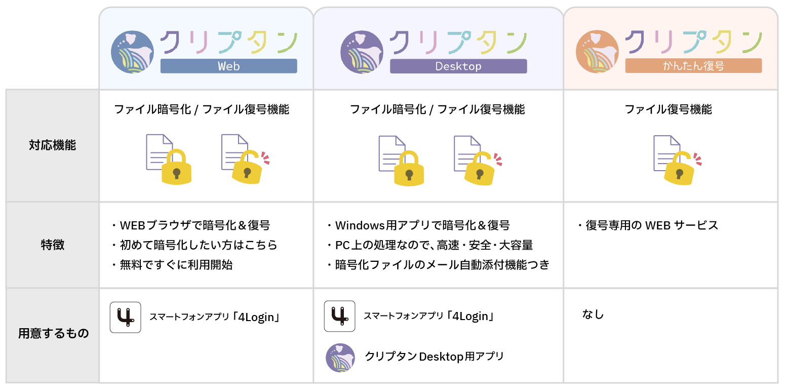 パスワード不要のファイル暗号化・復号サービス「クリプタン」 無料プランを大幅拡充