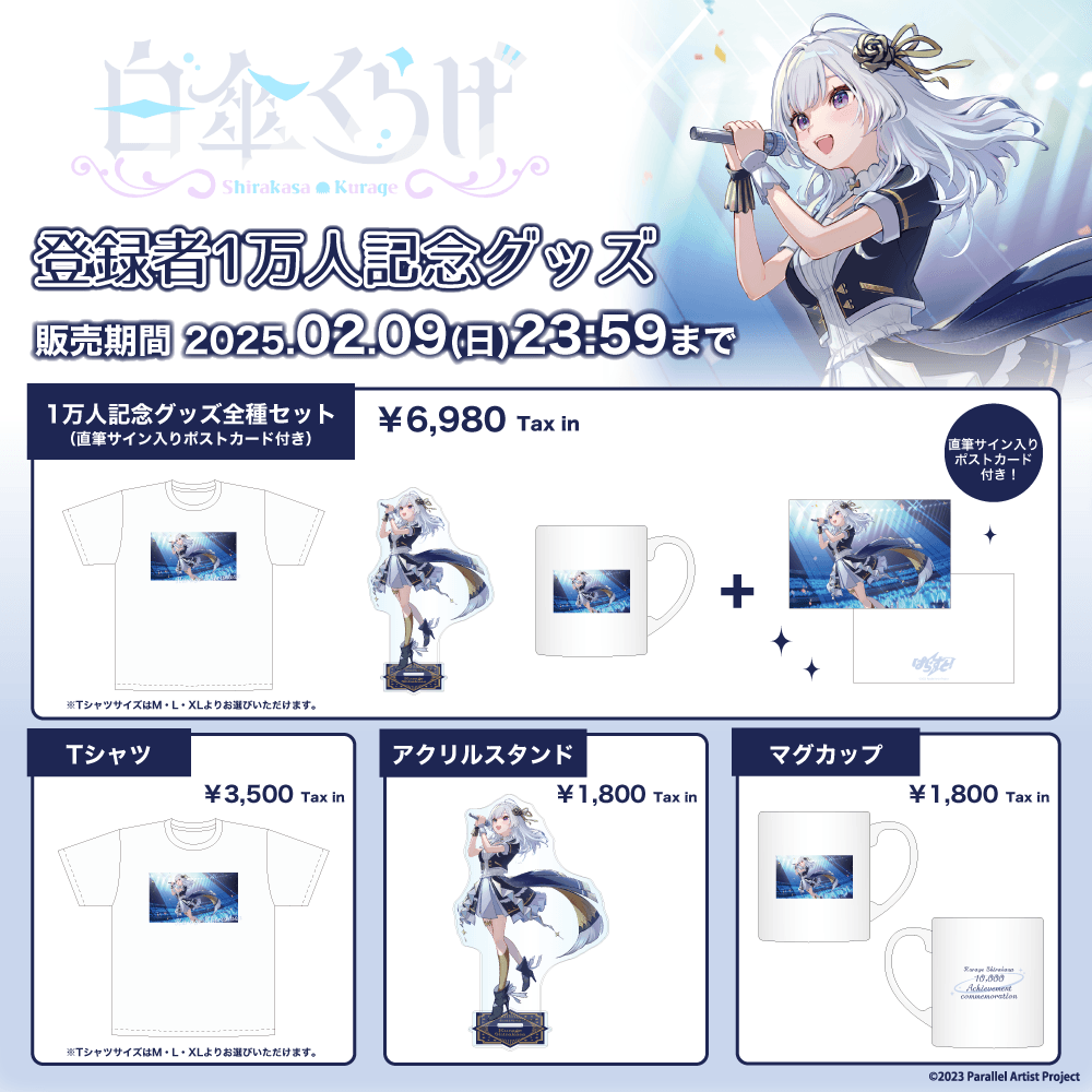 VTuberプロジェクト「ぱらすと!」から「白傘くらげ」の登録者1万人記念グッズが発売決定!