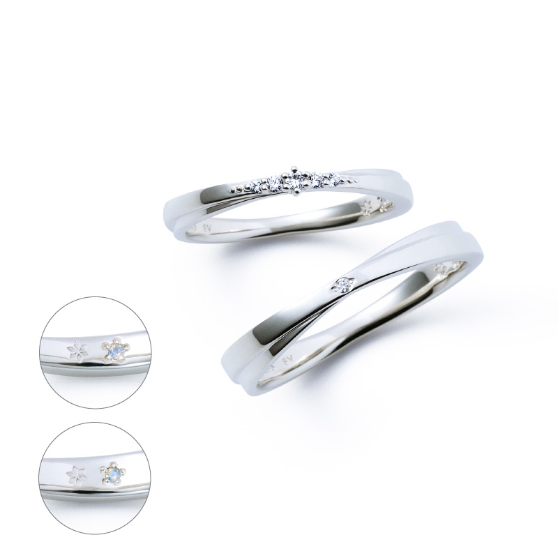 どちらにも、中央に”ふたりの未来がずっと続きますように”との願いを込めダイヤモンドをセット。