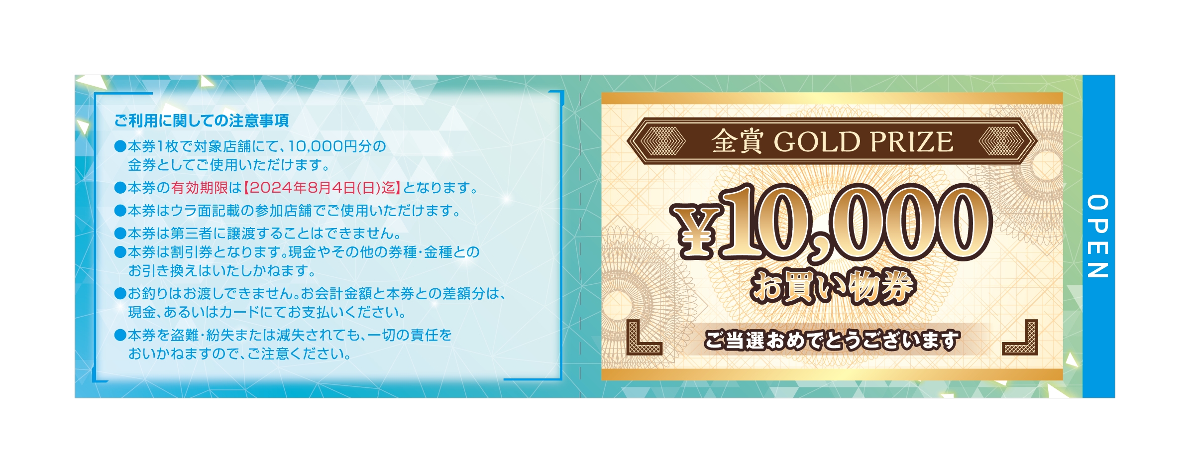 抽選で200名様に『金賞:10,000円分のお買物券』
