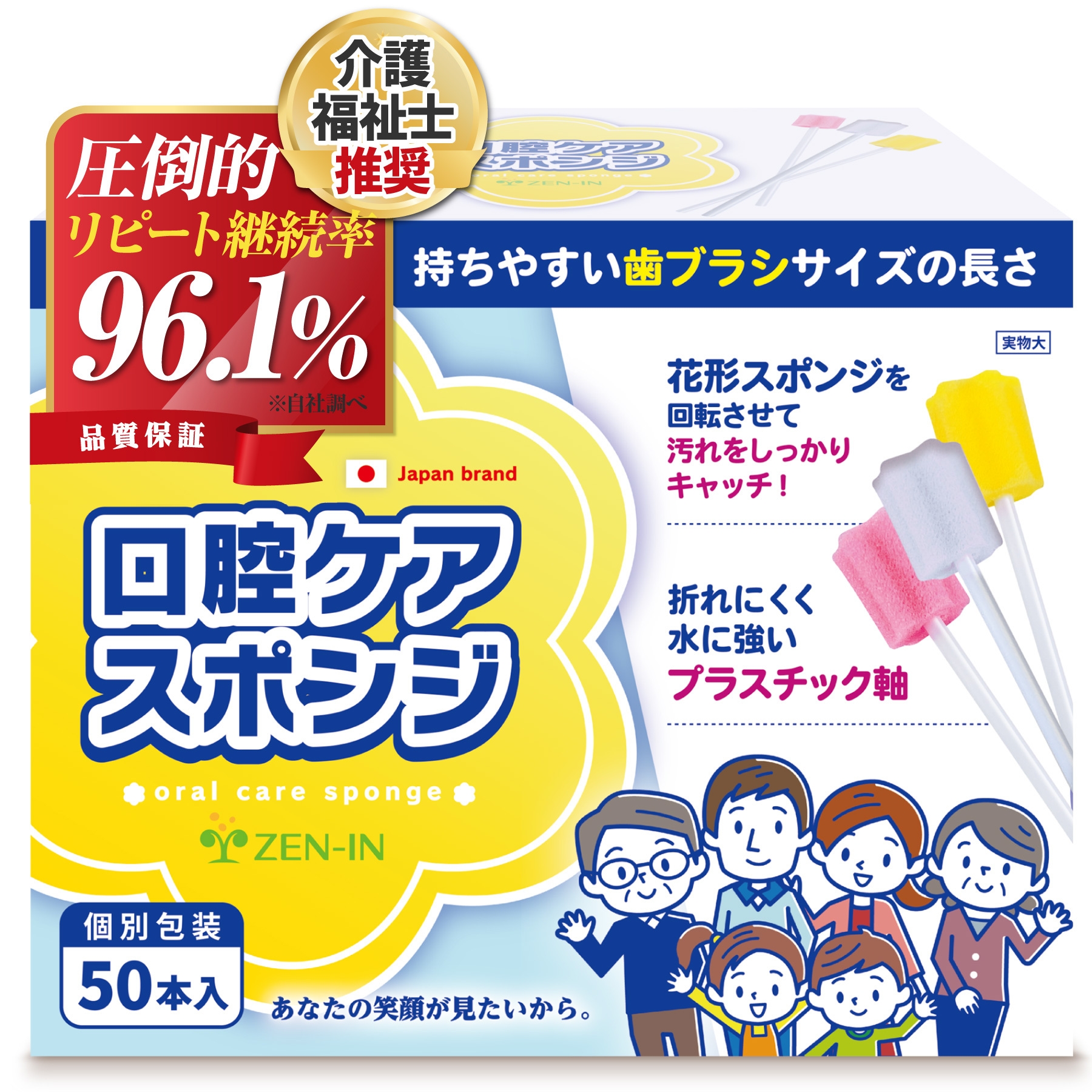 「柔らかいスポンジが優しく汚れを取り除き、口内環境をリフレッシュします。舌ケアや口臭対策にも適しており、介護現場でも大活躍中。安心と快適さを兼ね備えたこの商品を、自信を持っておすすめします!」