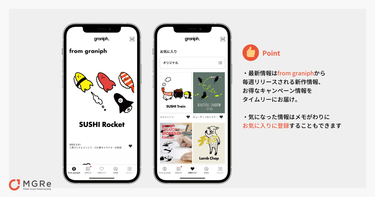 アプリの特徴1:最新情報はfrom graniphから お気に入り登録機能も
