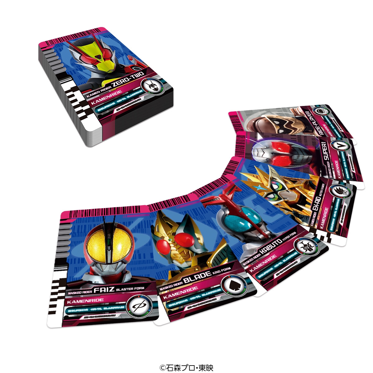 「ゼロツー」「スーパー1」「ライドプレイヤー」など全23枚がセットになっており、「変身ベルト PREMIUM DX ゼインドライバー」にセットして遊ぶことができます。