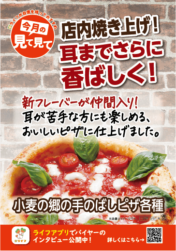 “おいしい” “ワクワク” “ハッピー” をお届けするライフコーポレーションは、インストアベーカリー“小麦の郷”で販売している「手のばしピザ各種」をリニューアルいたしました。