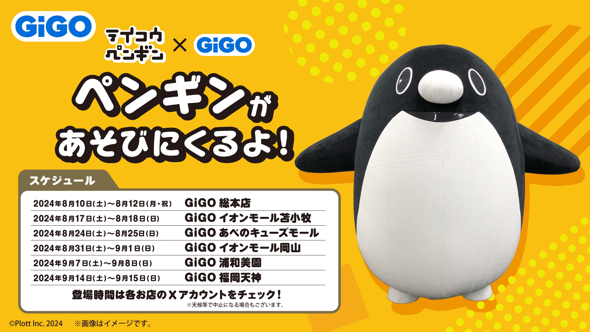 全国のGiGO6店舗にペンギンが出張します。