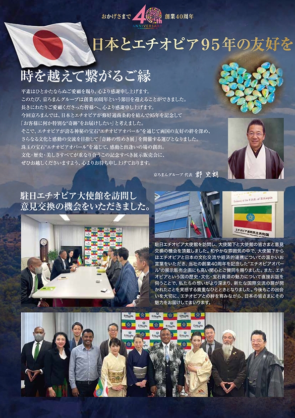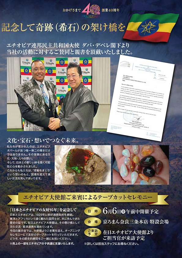 日本とエチオピアの友好95周年を記念した特別展示販売会 『奇跡の煌めき展』を京ろまん奈良三条本店にて6/6より開催