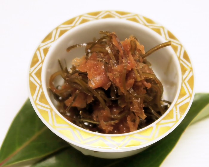 一般的なちりめん山椒に使われている山椒は“実山椒”のみ。京料理 さくらいの『花ちりめん』は瀬戸内でとれたちりめんじゃこをじっくり焚き上げ、仕上げに洛西水産の“花山椒”と“実山椒”をまぶしたちょっと贅沢なちりめん山椒。花山椒の香りと、色鮮やかな緑に食欲は一層高まり、口にしたときの柔らかさにも贅沢さを感じられるこだわりの一品。
