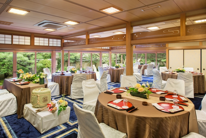 また、上賀茂神社の門前ともあり上賀茂神社本殿で結婚式を挙げた後、披露宴会場としても使用され和の情緒溢れる安らぎの空間でゆったりとしたひとときを