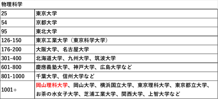 「物理科学」分野で国内18位タイ/岡山大学、東京理科大学などと同ランクに