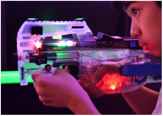 専用に開発された最新型赤外線レーザーガンを使用してゲームを行います。赤外線を利用したシューティングですので、怪我や痛みの心配が無く、安心・安全にゲームを楽しむことができます。FPSゲームが好きな方はもちろん、お子様や女性のお客様にも気軽に楽しんでいただけるのが特徴です。