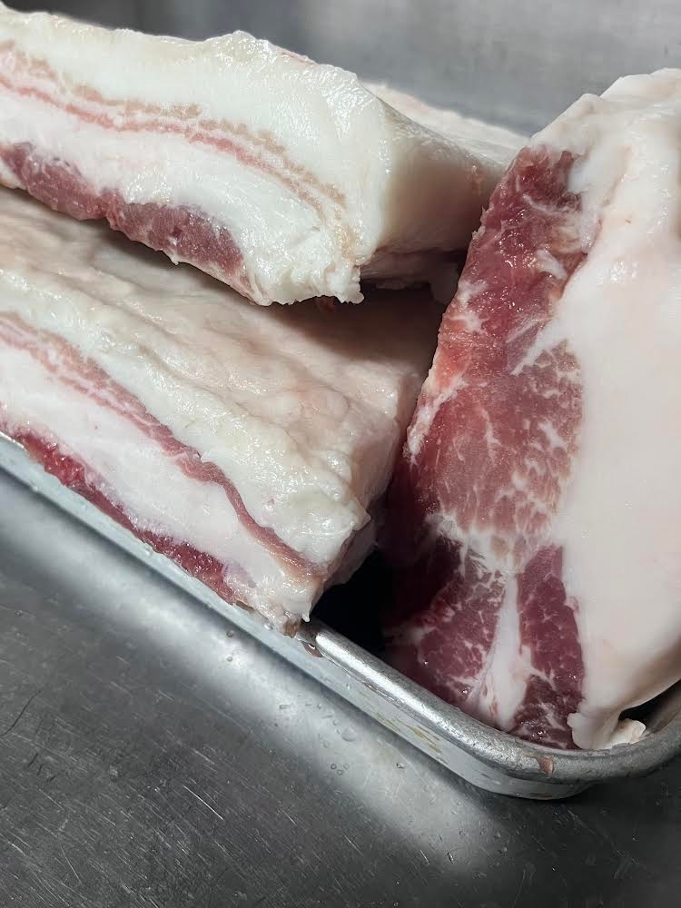 白と黒の2種類の油そばとカレーの3品目で勝負する「しゃきり」ですが、すべてのメニューにイベリコ豚を使用しています。店主の奥村さんが感動した「イベリコ豚ベジョータ」の味を多くの方に知っていただきたいという思いから、イベリコ豚を主要な材料として使いました。