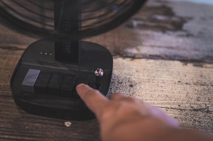 物理ボタンを配置し、電源のON/OFF、風量の調整をボタンを押すことで操作ができます。