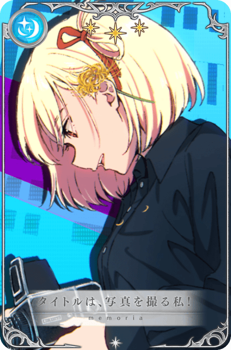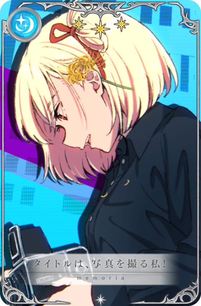 本ガチャより、新魔法少女「錦木千束(CV.安済知佳)」と新メモリア「タイトルは、ロックな千束!」「タイトルは、写真を撮る私!」が期間限定で登場いたします。