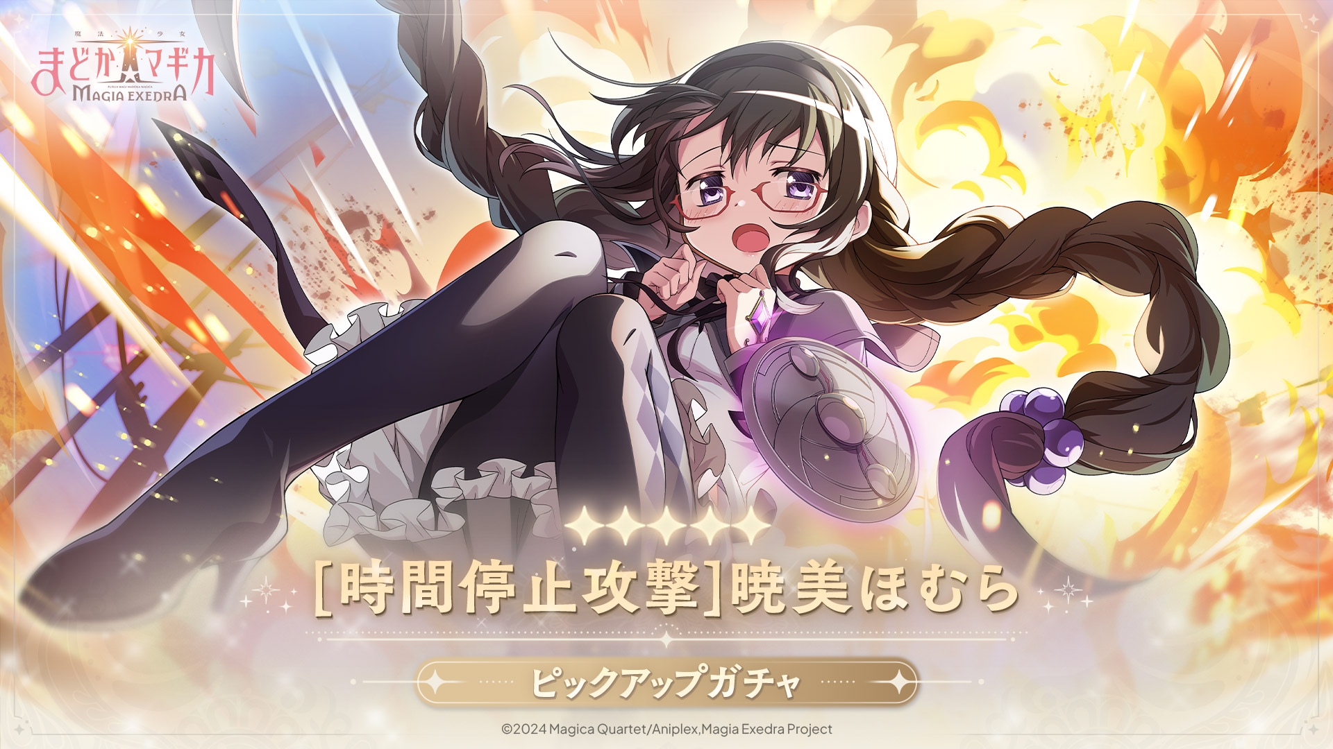 『魔法少女まどか☆マギカ Magia Exedra』、4月25日(金)12:00から★5キオク[時間停止攻撃]暁美ほむら 登場!GW記念 1日1回無料ガチャやログボも開催!