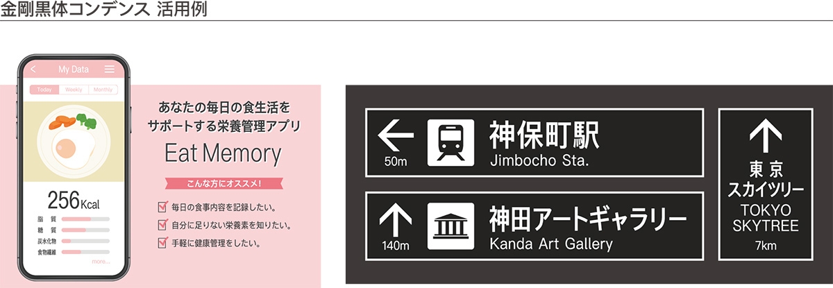 ▼4種類の横幅と6ウェイトで最適なサイズにFitする「金剛黒体コンデンス」を「DynaSmart V」にて10月19日に提供開始URL