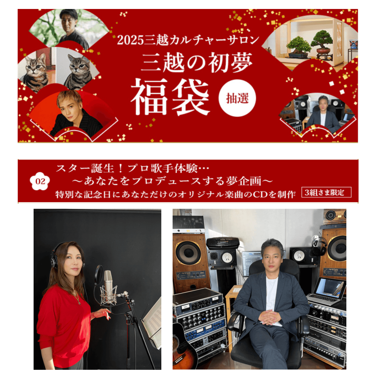 百貨店の福袋商戦がスタートした中で販売した、三越カルチャーサロンのプロ歌手体験をプロデュース「夢を叶える福袋」は話題となっています。こちらの福袋の抽選結果は、2025年1月に発表します。