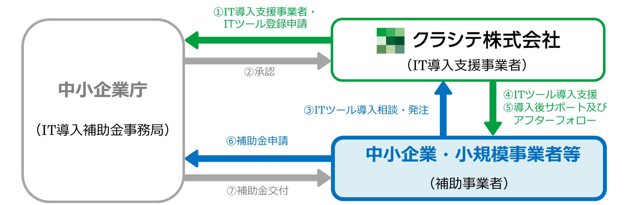 クラシテが提供するITツールの導入に際して、一定の条件を満たした中小企業・小規模事業者は、IT導入補助金の交付申請が可能となりました。
