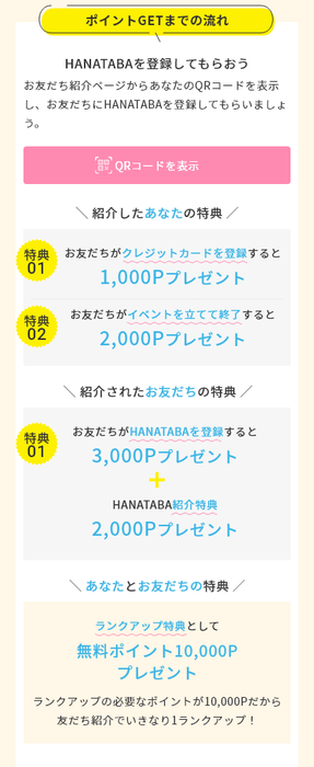 お友達を紹介するとこのように特典がたくさん!