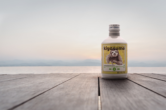 「kiyasume」は「気が休まればそれでいい」をコンセプトにした、ゆずフレーバーの微炭酸飲料です。のんびりしたナマケモノが気休め程度のリラックスをお届けします。