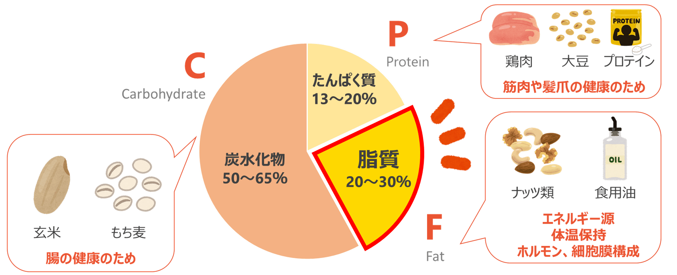 私たちのカラダづくりの基本として、PFCバランス(P=たんぱく質、F=脂質、C=炭水化物)があり、たんぱく質13~20%、脂質20~30%、炭水化物50~65%が栄養バランスの黄金比とされています。そのため、特定の食材を減らしたり、置き換えたりすることはバランスが崩れる原因となり、エネルギー不足に陥ってしまうことも。その結果、お腹が空きやすくなってしまい、食欲を我慢できず、つい食べてしまう…というような逆効果につながりかねません。