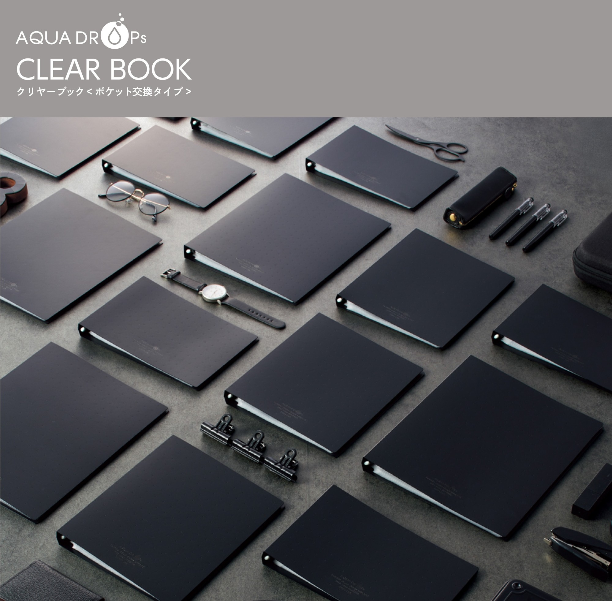 株式会社LIHIT LAB.(本社:大阪市中央区農人橋1-1-22 代表取締役社長:田中宏和)は、2025年12月下旬より、AQUA DROPs(アクアドロップス)シリーズより、多種多様な書類サイズに対応したクリヤーブック<ポケット交換式>の新ラインナップを発売いたします。(3品番3SKU)同シリーズのクリヤーブック<ポケット交換式>は、ポピュラーなA4サイズから大判サイズ(B4、A3、B3、A2)まで、取り揃えが豊富な点でご好評いただいているシリーズです。この度、さらに幅広い種類の書類サイズに対応するため、新ラインナップとして「B6・E型」、「A5・S型」、「B5・S型」の3タイプを追加。お持ちの様々な書類サイズの収容を同シリーズで解決します。とじ具の特長として、表紙を360°折り返してもスムーズに使用できる設計なので省スペースで使用することができます。また、とじ具の開閉は、下部のボタンを押すと簡単に開き、とじ具のリング部分をつまむだけで簡単に閉じることができます。書類の閲覧やポケットの交換など、一連の動作におけるストレスをできるだけ抑えた自然と使いやすい使用感となっております。サイズ展開の拡充により、同シリーズでファイル類を統一できる幅がさらに広がります。