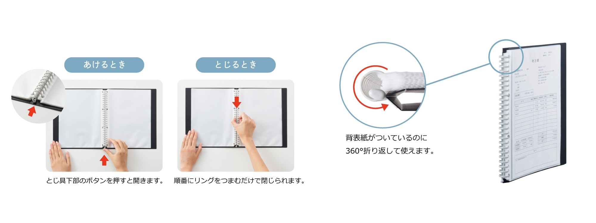 360°表紙が折り返せるクリヤーブック 新ラインナップ発売
