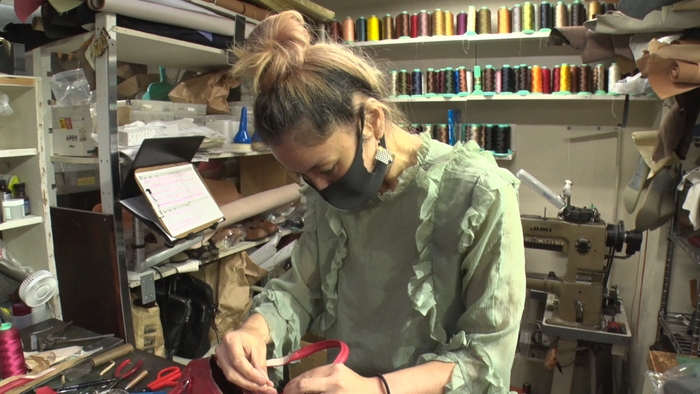 続いて、年間1000個以上のバッグを直すキャリア14年の松崎愛さんが手掛けるのは、依頼者が師匠の奥様からいただいた大切なブランドバッグ。仕事でもプライベートでも肌身離さず使っていたため、わずか4年でガムテープで補修するほど持ち手がボロボロになってしまいました。