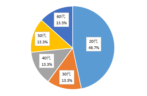 最も多いのは20代だが、30-60代は同じ割合となっており、どの年代でもしあわせ度を高く維持できている人がいる。