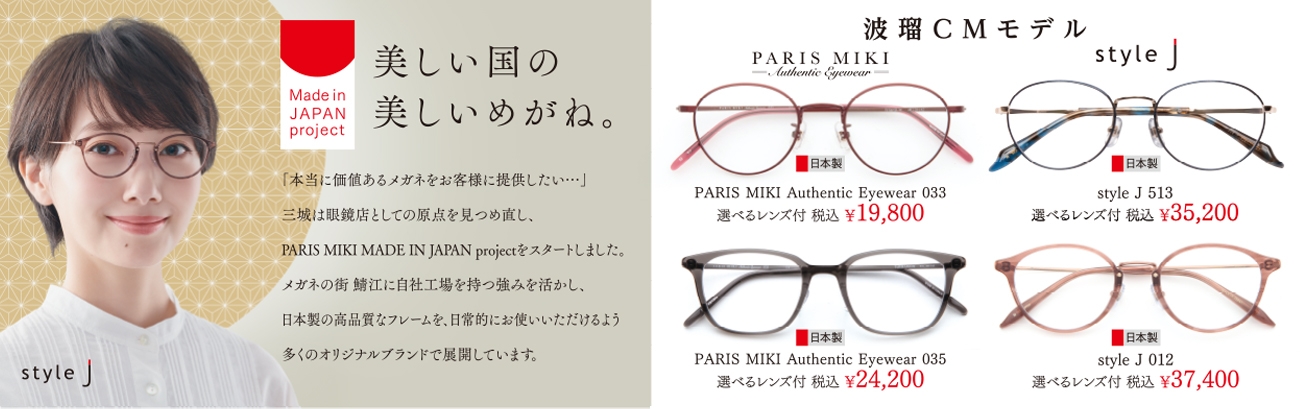 日本および地域への利益の還元を掲げ、商品のメガネフレームは「MADE IN JAPAN」にこだわり、エシカル消費を提唱いたします。近年のアジア産商品に押されながらも、高い技術力と品質を維持し続けている「日本のメガネ」を応援すべく、メガネの一大産地福井県鯖江市の企業・工場と連携し、オリジナル商品「style J」などを開発しています。店内の商品も日本製にこだわり、その高い品質の発信地となるべく、豊富に取り揃えております。