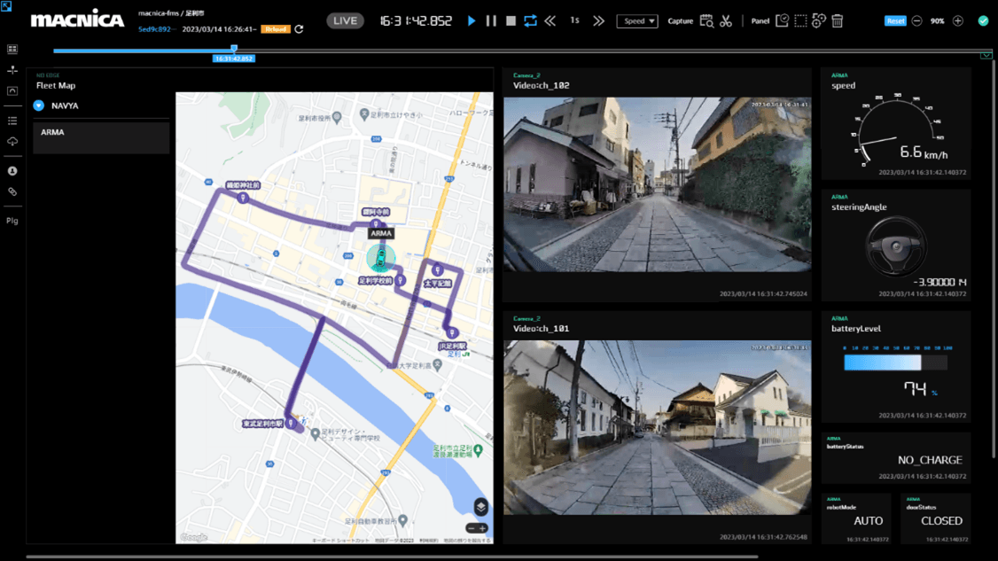 マクニカは、自動運転バスの運行、自動運転走行に必要なデータ取得・セットアップ、技術的資料・取得データを提供します。また、車両の走行データをマクニカ製遠隔監視システム「マクニカモビリティデータプラットフォーム*3」に連携させることで、自動運転バスの走行情報を離れた場所でリアルタイムに確認することが可能になります。