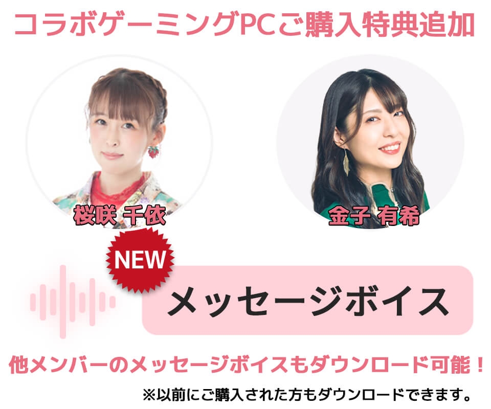 声優e-Sports部 LEVEL∞ コラボゲーミングPCご購入特典に「桜咲千依」「金子有希」のメッセージボイスを追加いたしました。