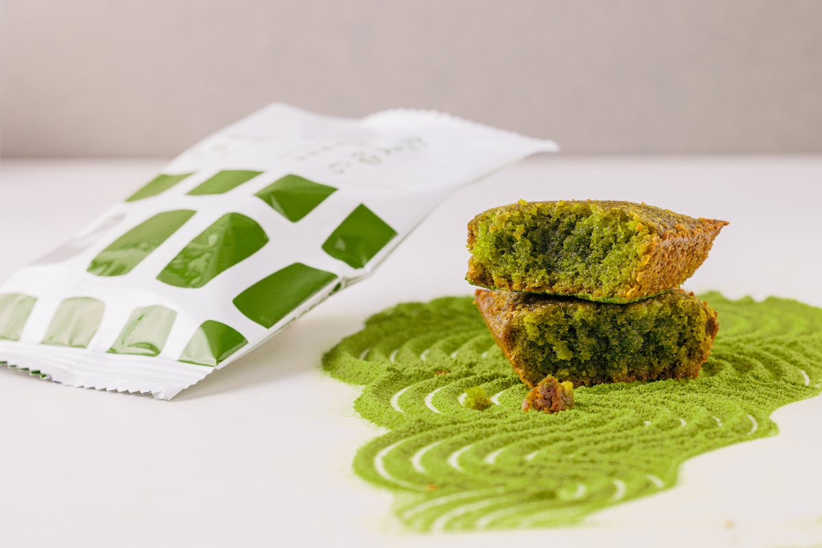 1枚あたり約2gの宇治抹茶を使用。グルテンフリーの生地に、ホワイトチョコの甘さ、抹茶の苦味、少しの塩味が混ざり合い、深みのある味を演出します。