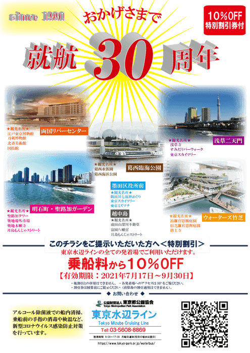30周年記念第2弾「乗船料10%offキャンペーン」
