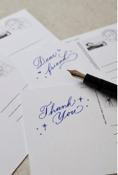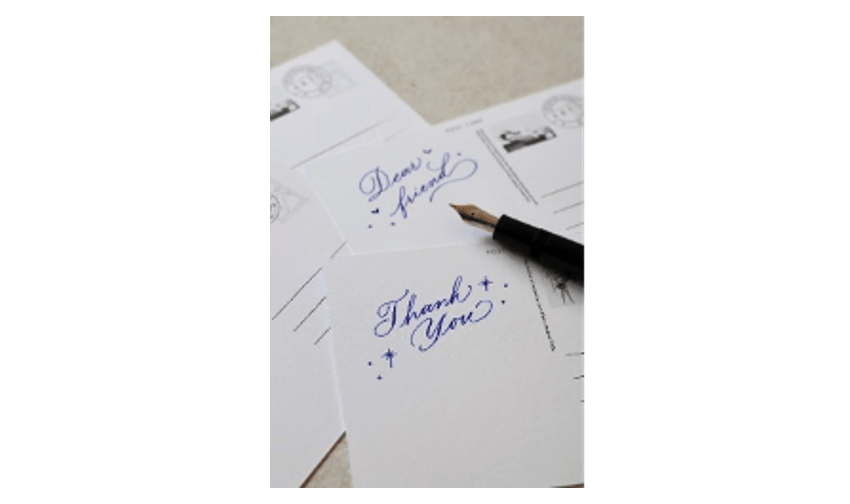 サービス:マイスターシュテュック万年筆を使って、オリジナルポストカードにお手紙を書いていただけます。