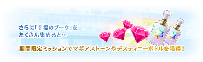 期間限定ミッションを達成することでマギアストーンや「オーバーリミッター」「デスティニーボトル」「レインボーオーブ」「マギアチップ」を獲得できます。
