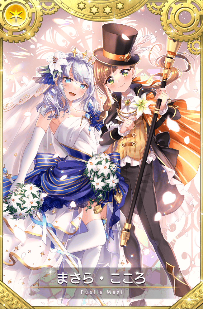 本ガチャより、新魔法少女「まさら・こころ 花嫁ver.(CV.石上静香・近藤玲奈)」と新メモリア「繋いだ手の中にある幸せ」「そんなあなただから」が期間限定で登場いたしました。