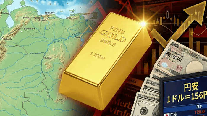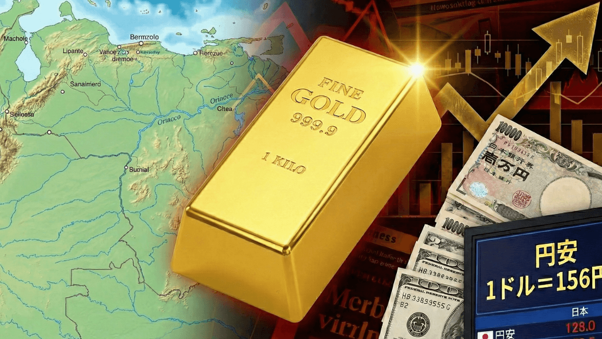 世界情勢として、まずベネズエラ情勢の不安定化などが意識されています。「有事の金」として安全資産への逃避資金が流入し、ドル建て金価格が過去最高値を更新しました。