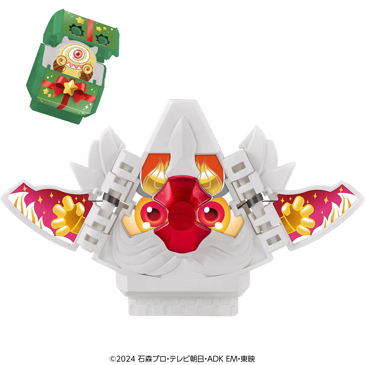 『仮面ライダーガヴ』より、「DXおしゃべりゴチゾウ」シリーズの最新作として、第5弾と第6弾を商品化。特徴的なゴチゾウ自身の鳴き声、ショウマ(演:知念英和)、辛木田絆斗(演:日野友輔)に加え甘根幸果(演:宮部のぞみ)のボイスや、BGMなどを搭載しています。通常DX版のライダーゴチゾウシリーズから全パーツを新規造形することで音声ユニットを搭載し、様々な音声が発動可能となりました。