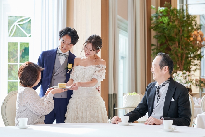 両家両親やお世話になった方と思い出をシェアできる3つセットとなったケーキ。感動的なシーンを演出したい方にぴったりです。