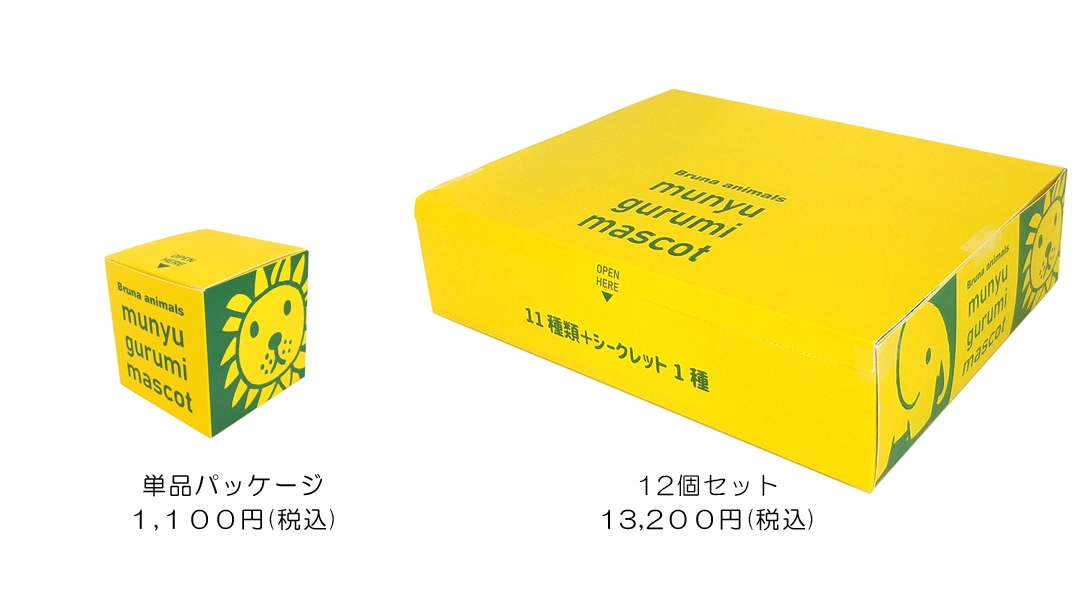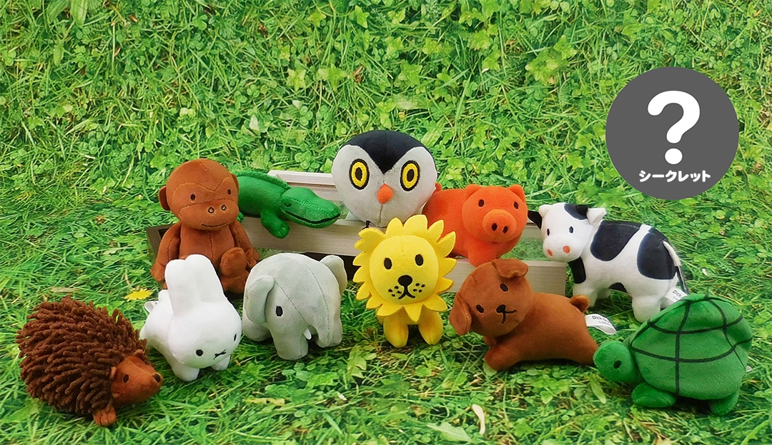 「ブルーナアニマルズむにゅぐるみマスコット」は、ディック・ブルーナさんが描く動物たちを手のひらサイズのかわいいマスコットにした商品で、マスコットとしては珍しく初のブラインドパッケージ仕様になっています。動物は、ライオン、ブタ、ゾウ、ウシなどの