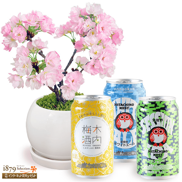 かわいらしいサイズながらも、見ごたえのある旭山桜に、常陸野ネストビールと木内梅酒のお酒3缶を合わせたセットです。お部屋の中でもお花見をお楽しみいただけます。【※植物の花つき、花色、枝ぶりなどは写真と若干異なることがありますのでご了承ください。蕾が多い状態でのお届けとなります。】【※この商品は、離島などの一部の地域へのお届けは出来ません】