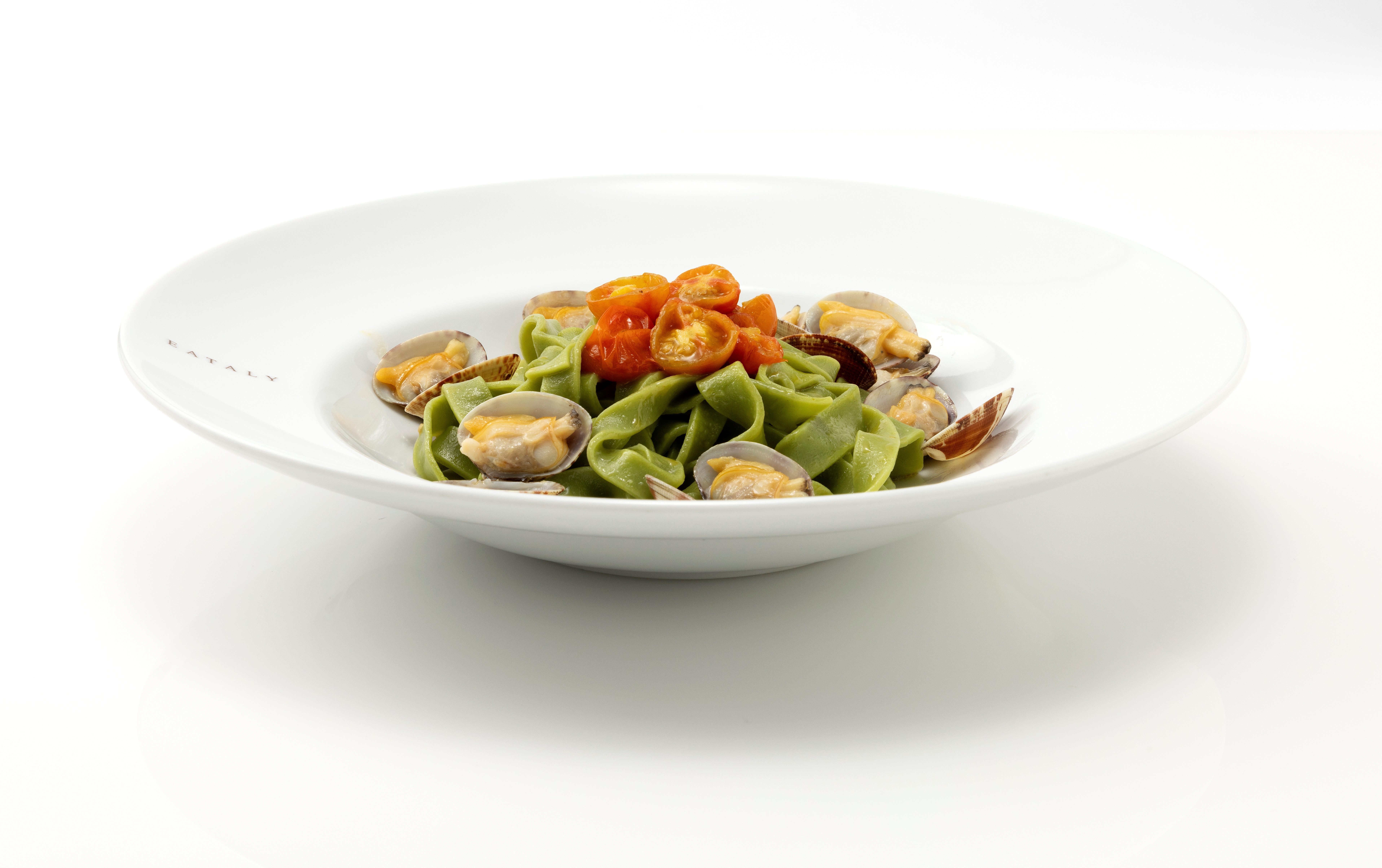 ・新島産明日葉のタリアテッレ(フレッシュトマト入りヴォンゴレ)