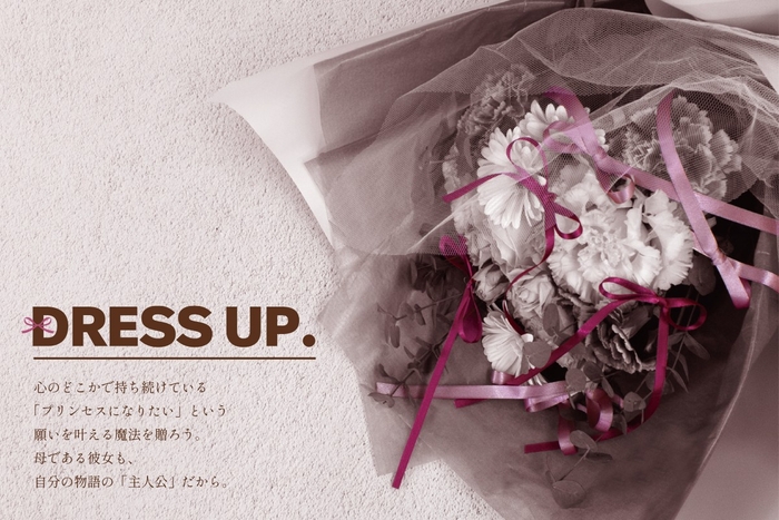 心のどこかで待ち続けている「プリンセスになりたい」という願いをかなえる魔法を贈ろう。母である彼女も自分の物語の主人公だから。そして、この特別な日に、彼女の心に眠るプリンセスが目覚め、美しいドレスを纏い、笑顔とともに輝くひとときを過ごせるように。誰よりも頑張る彼女に、ふと自分を見つめ直し、自分を愛する時間をプレゼントしよう。