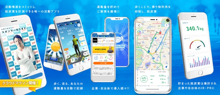 2020年には、住民や社員の方の健康増進を支援するツールとして、自治体や企業での導入も始まり、ユーザーの平均歩数の増加と高い利用継続率を実現しています。2022年4月に、人の活動による二酸化炭素排出抑制効果を可視化する新サービス「SPOBY 脱炭素ウォーク」をリリースしました。