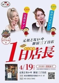 TikTokのスターライバー美香ママ&ユウベイビー出演!4月19日(土)元祖どないや新宿三丁目店で1日店長イベント開催