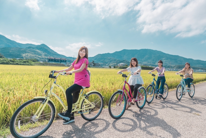 電動アシスト自転車で福岡県・岡垣町の綺麗な海や山を眺めながら、
