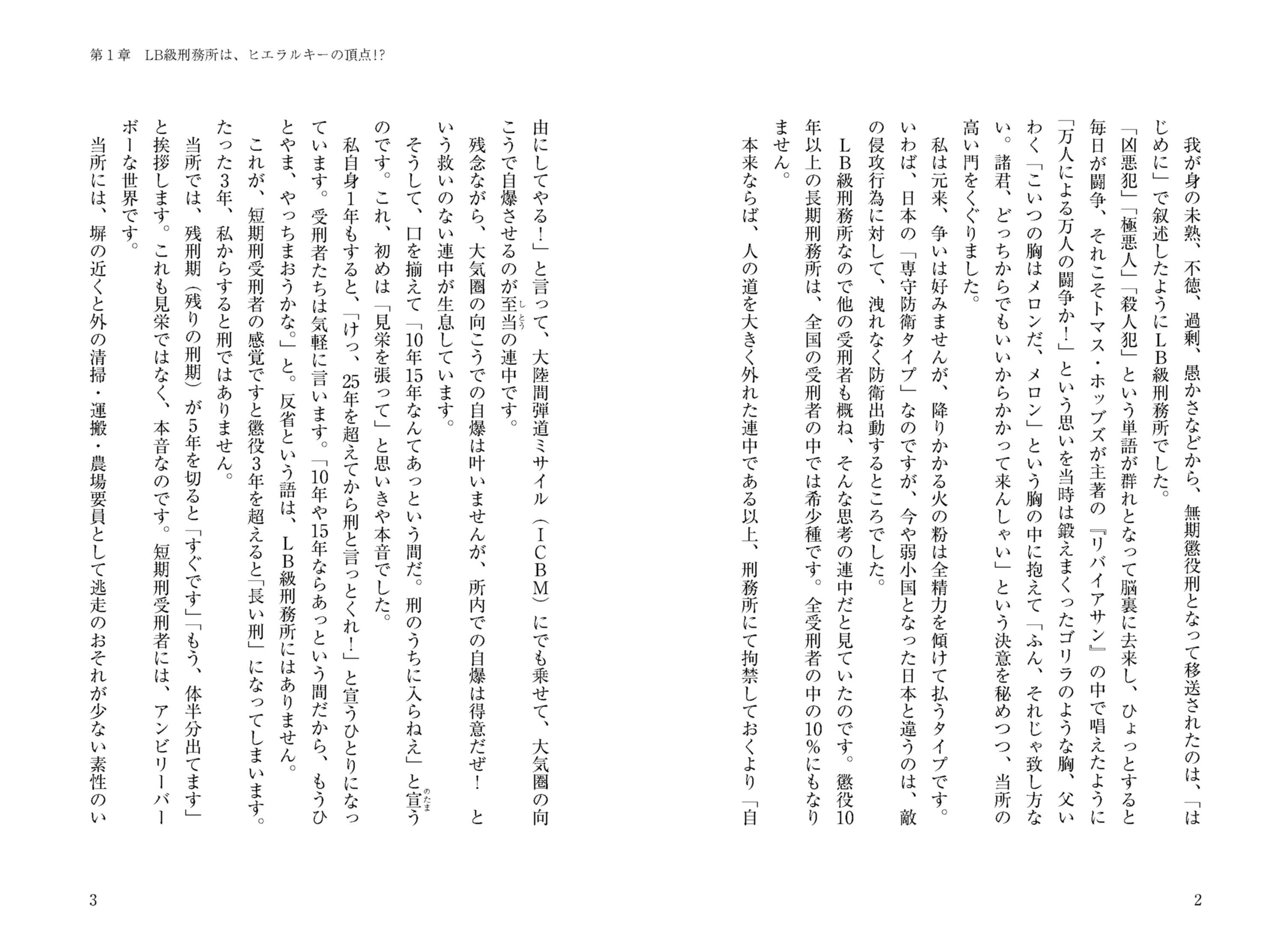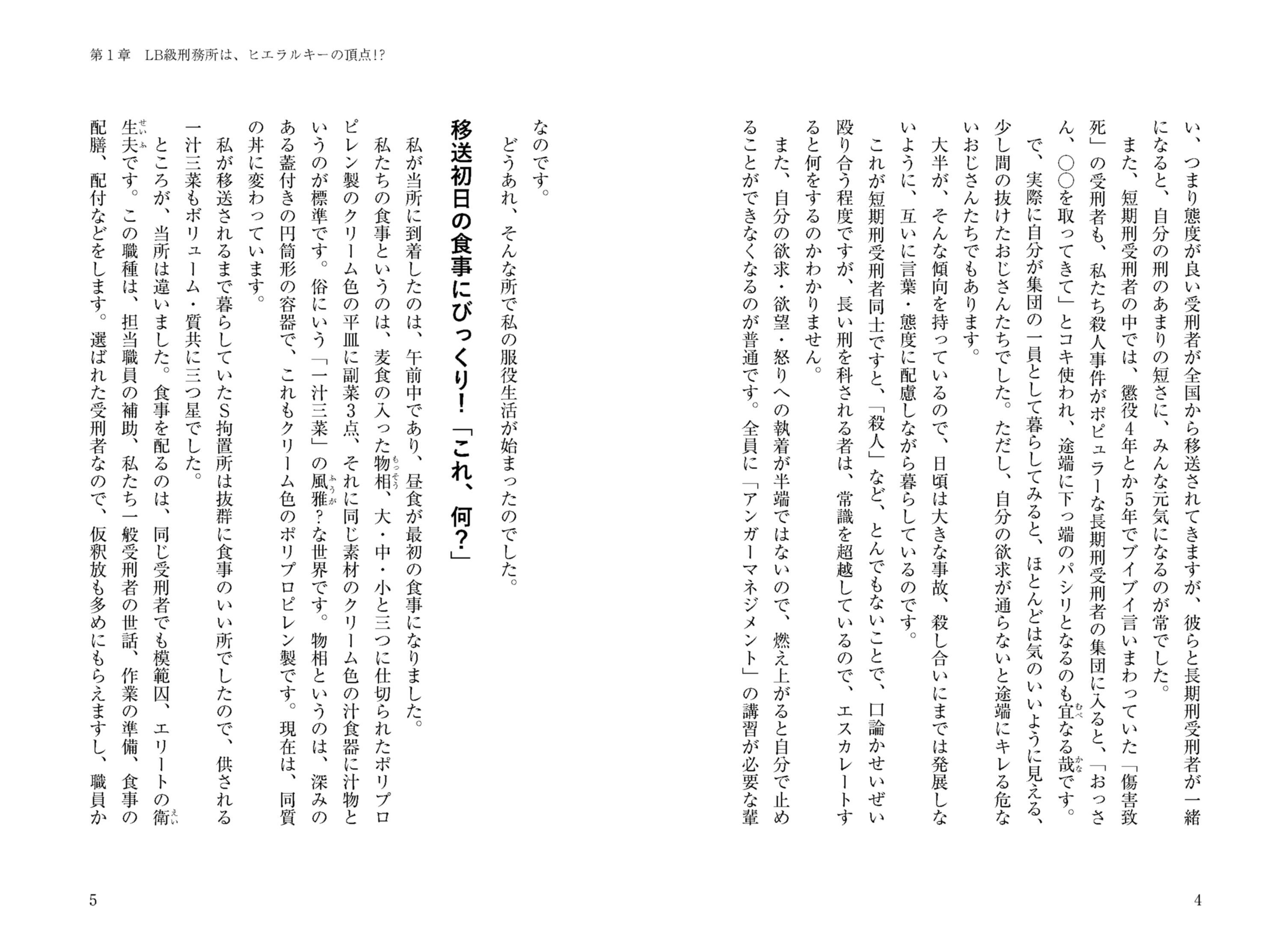 かくいう私も30年選手で、服役年数の序列ではやっと「上の下」というところになりました。今回は、その30年の間の食事事情を柱に刑務所の処遇の変遷や、短期刑務所とLB級刑務所の受刑者の違い、LB級刑務所独特の文化、習俗にも触れています。