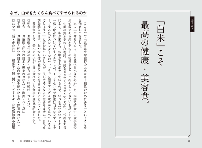 本書は1980年に刊行され、120万部突破のベストセラーとなった鈴木その子の「やせたい人は食べなさい」をベースに、現代の生活環境や食習慣などを鑑み、新たに36のルールにまとめて書き下ろしたものです。