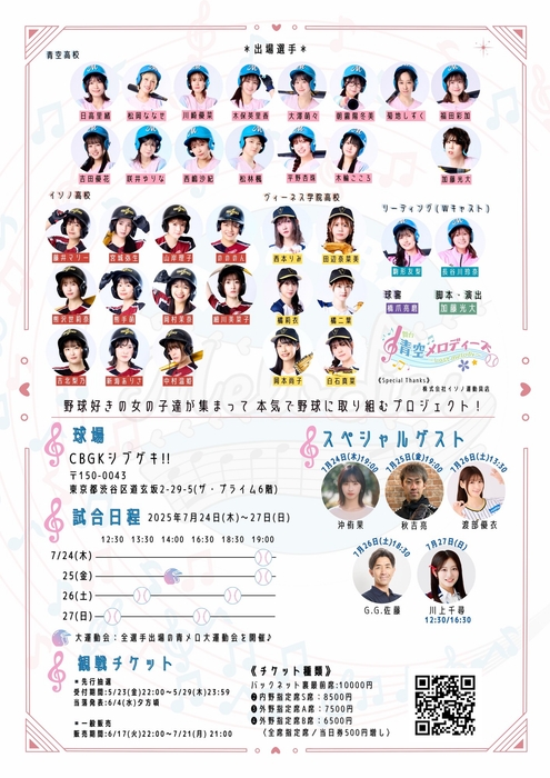 G.G.佐藤、秋吉亮ほかゲスト出演! 青春女子野球舞台シリーズついに完結! 舞台『青空メロディーズ〜Last melody〜』CBGKシブゲキ!!にて上演決定